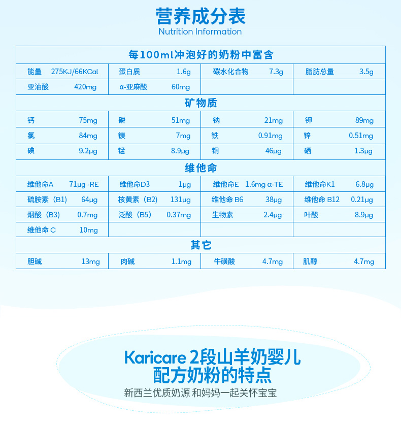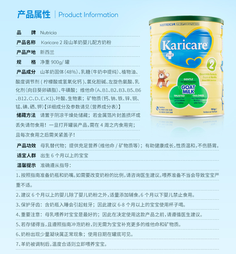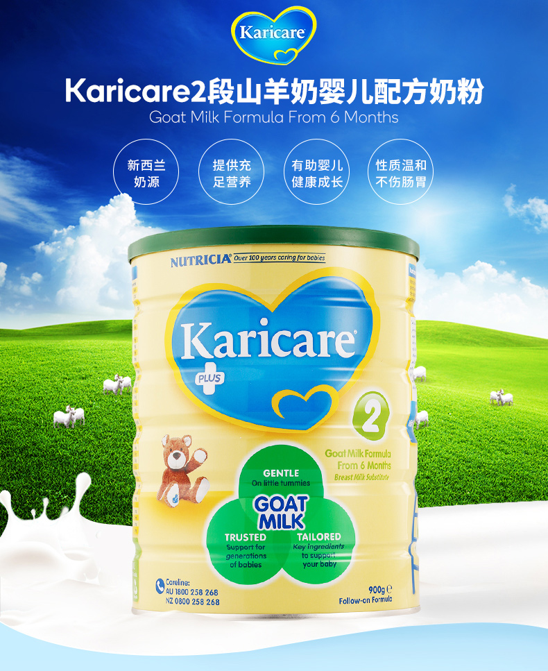 | 商品名称:保税区直发 新西兰Karicare可瑞康山羊奶粉2段(6-12个月)900g | 商品编号:1NF00000026 | 品牌:新西兰Karicare |