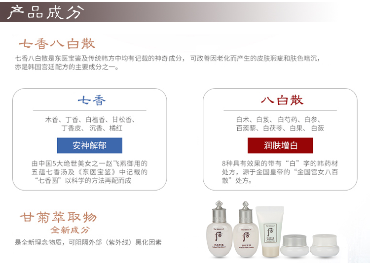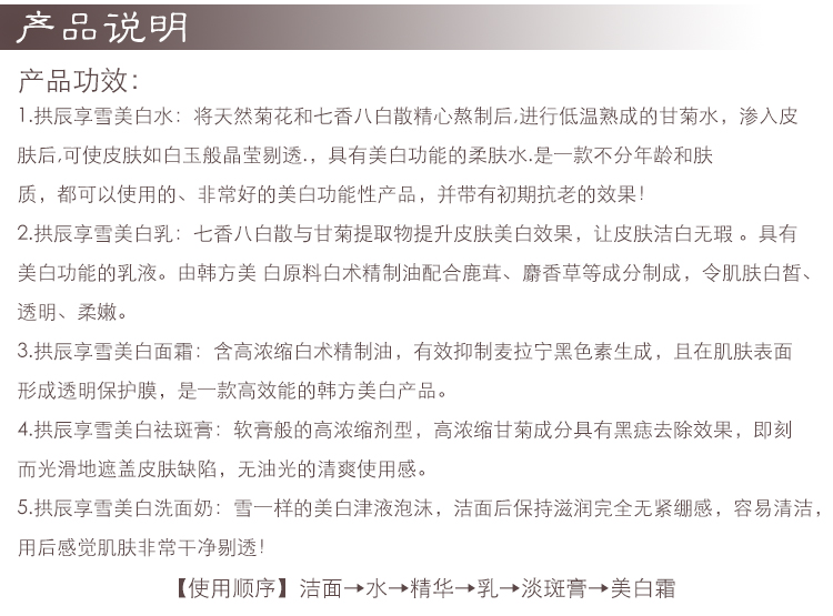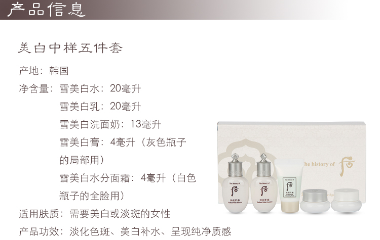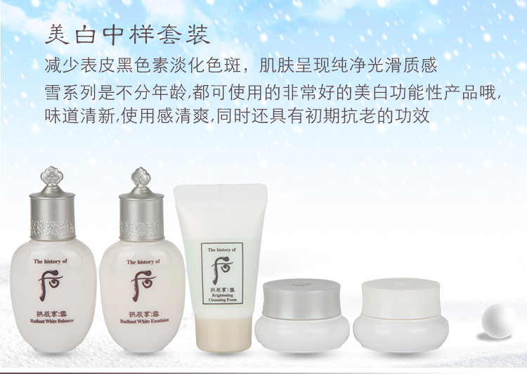 | 商品名称:香港直邮 whoo后拱辰享 雪 中样5件套 美白补水保湿提亮肤色 | 商品编号:20161128164546 | 品牌:Whoo后 |