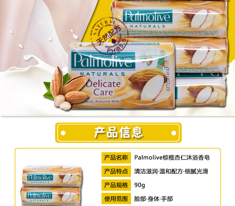 | 商品名称:一般贸易 西班牙Palmolive 棕榄杏仁牛奶沐浴香皂 90g (现货) | 商品编号:3RHDG000051 | 品牌: |
