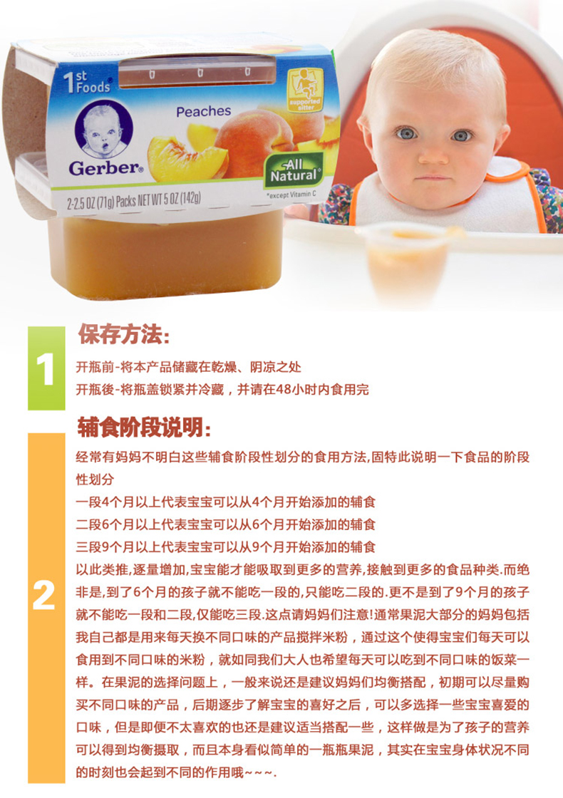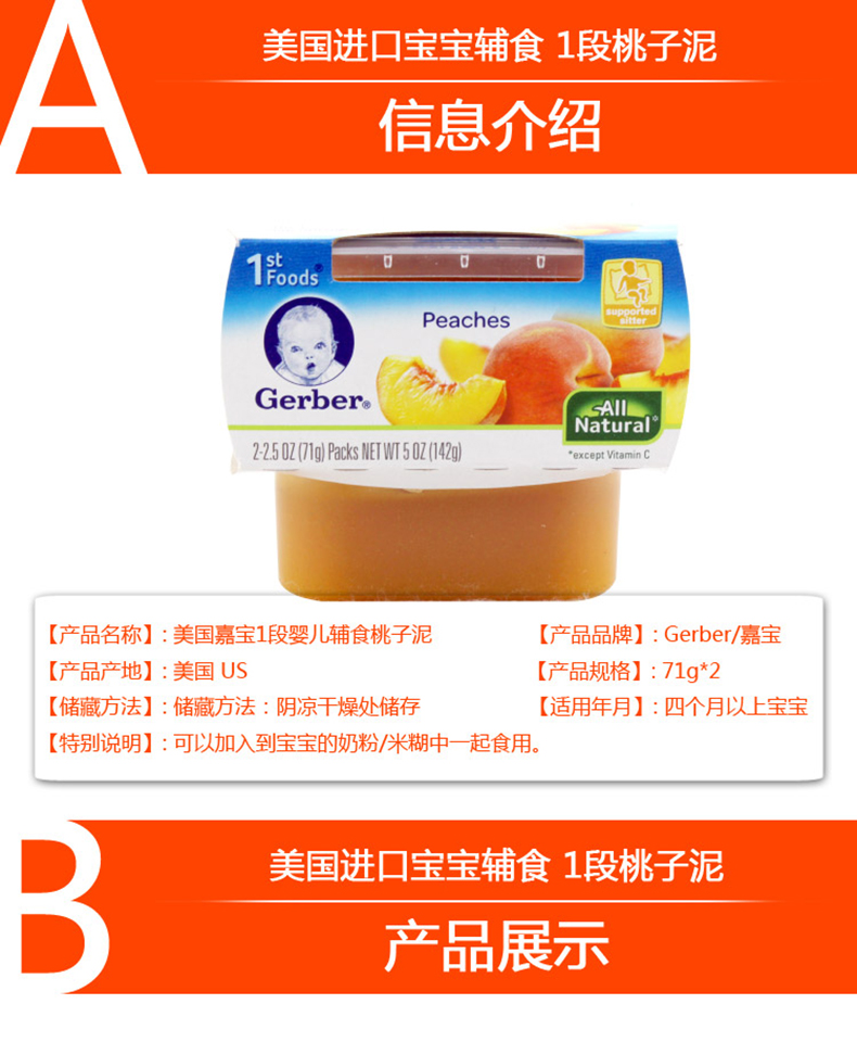 | 商品名称:一般贸易 美国嘉宝Gerber果泥1段黄桃蜜桃泥142g (现货) | 商品编号:3YYDG000006 | 品牌: |